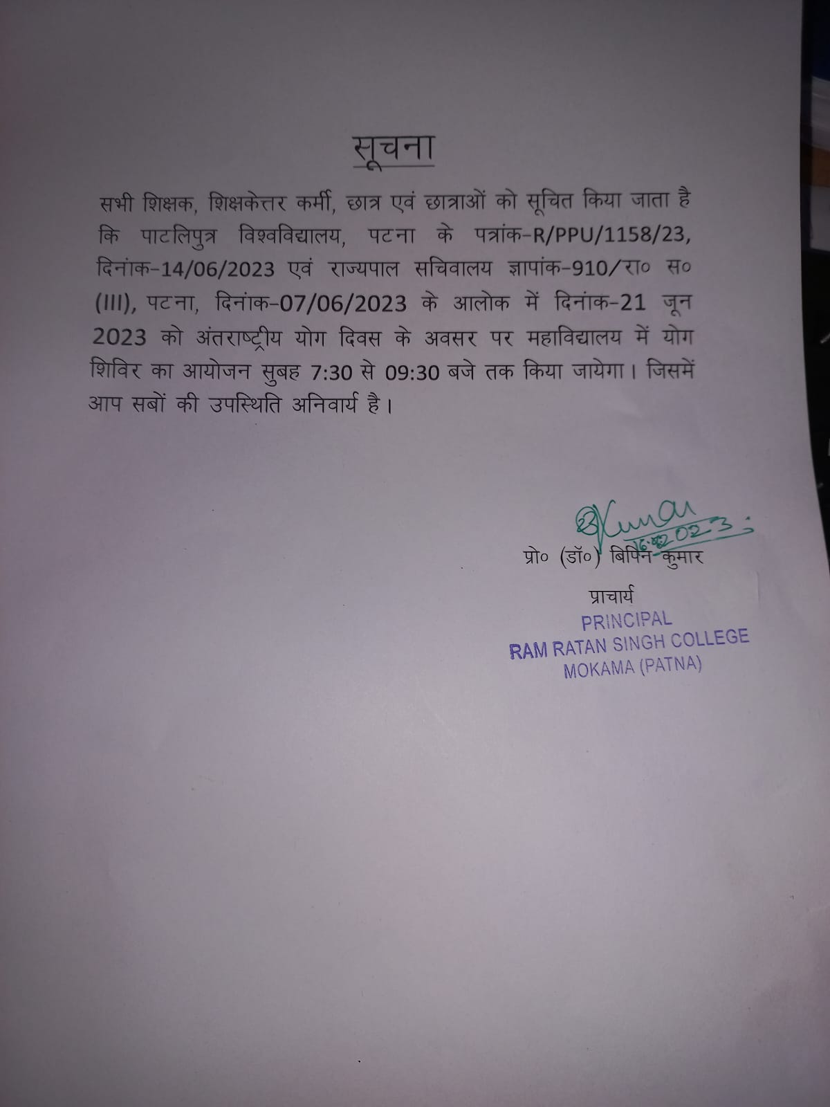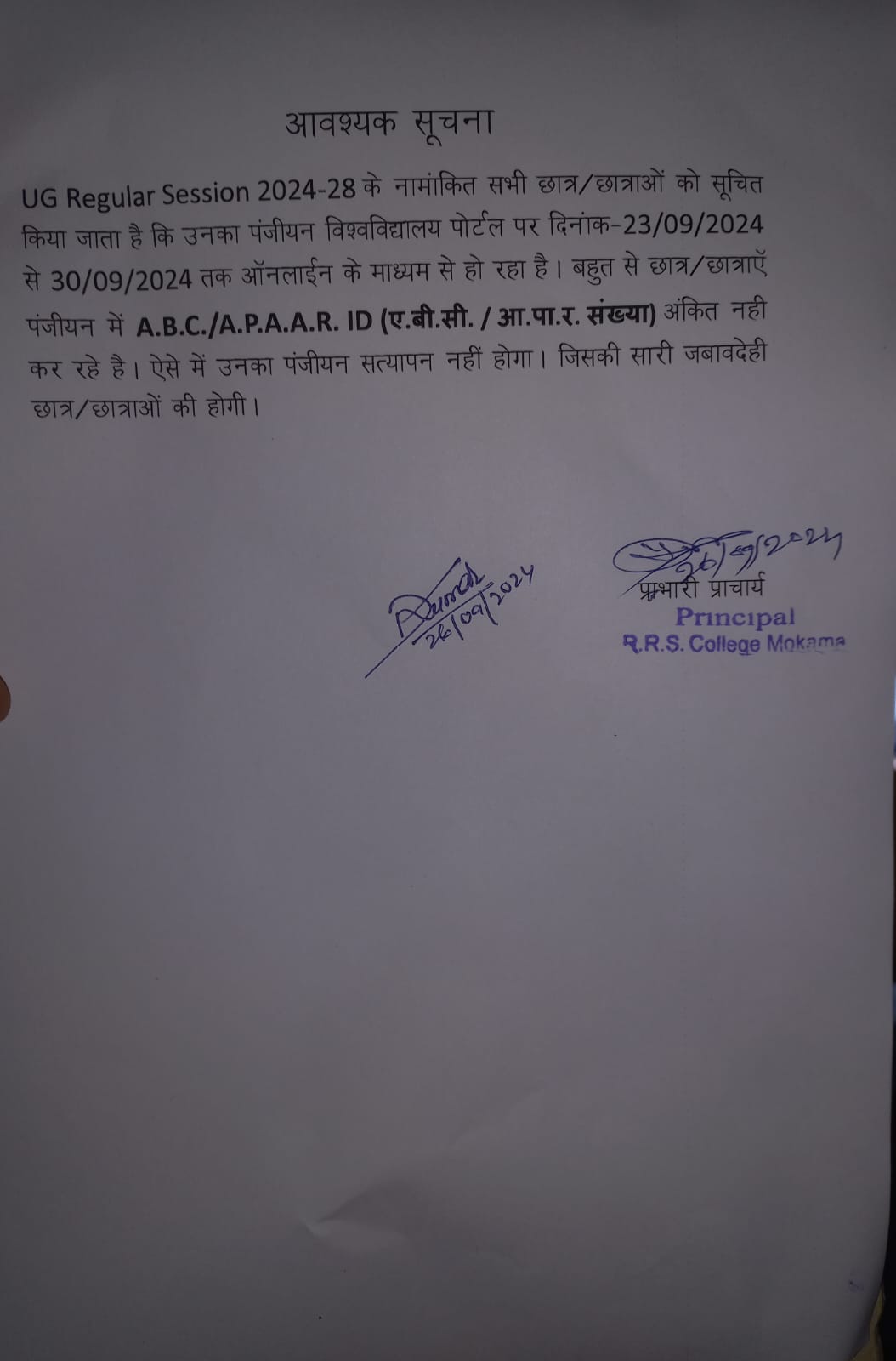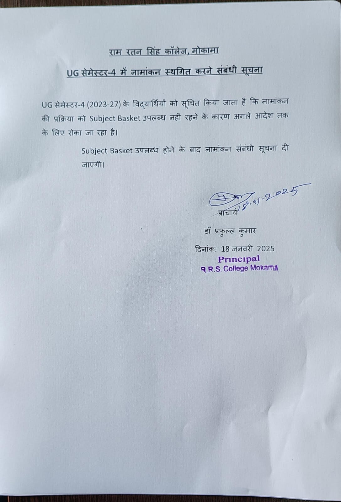 Hon'ble Principal - R R S College Mokama